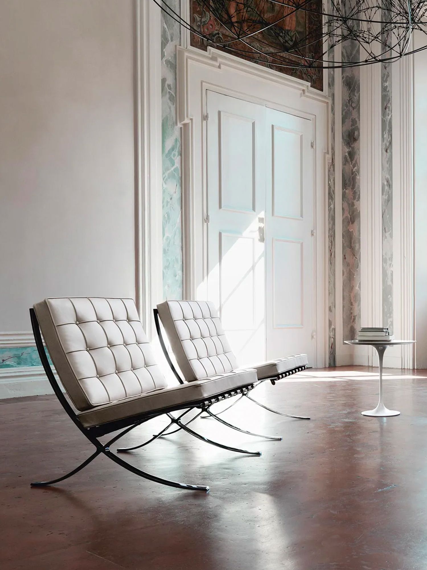 바르셀로나 체어는 주로 현대적이고 고급스러운 인테리어 스타일에 잘 어울리며, 거실, 대기실, 사무실 등 다양한 공간에서 사용됩니다. 이 체어는 편안과 독특한 디자인으로 인해 전 세계적으로 사랑받고 있으며, 시대를 넘어서도 여전히 많은 사람들에게 인기가 있습니다.