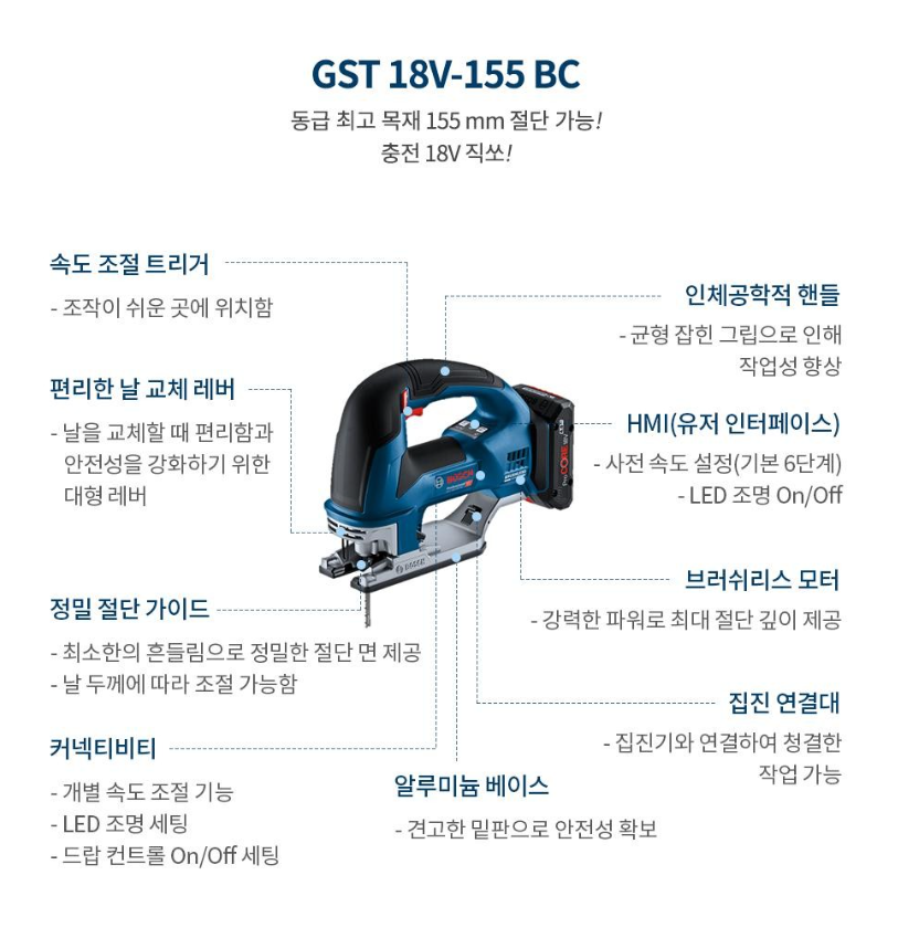 예전엔 전력이 유선 직소기에 비해 약했지만, 배터리 효율이 좋아지면서 힘도 유선만큼 많이 좋아졌습니다.