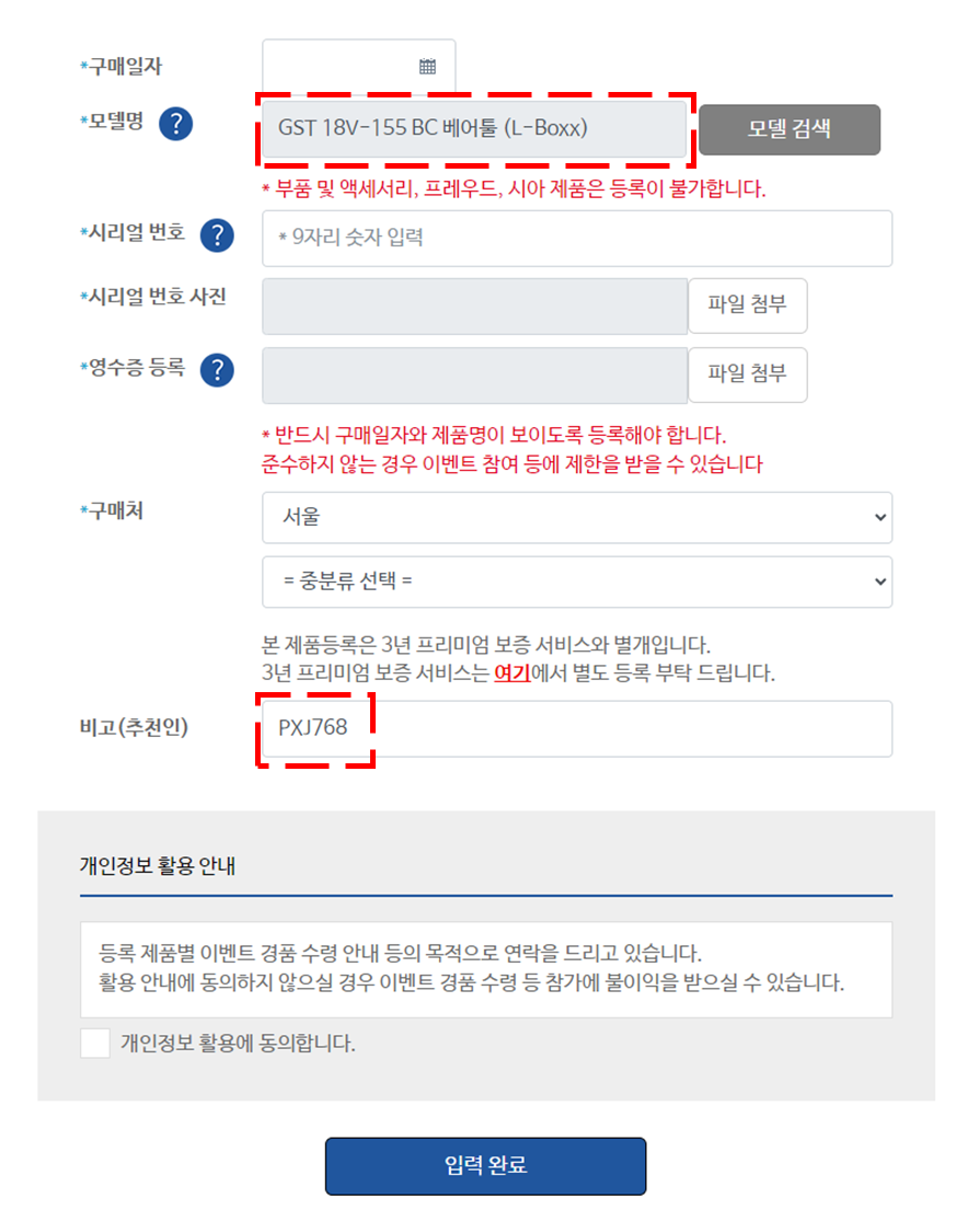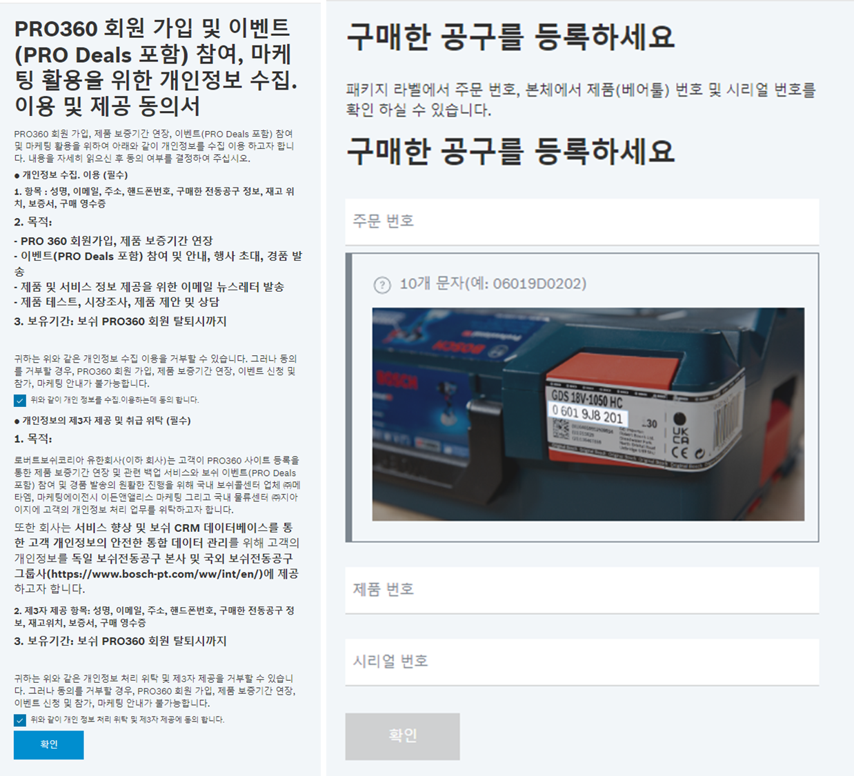 제품 구매 후, 2주 이내 보쉬 홈페이지에 멤버쉽 제품을 등록하셔야 합니다.