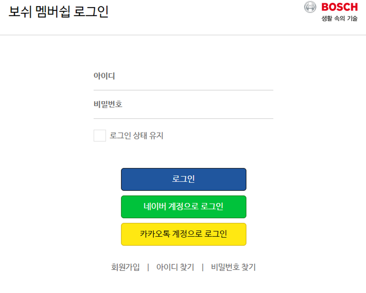 보쉬 멤버쉽에 가입을 우선 진행합니다.