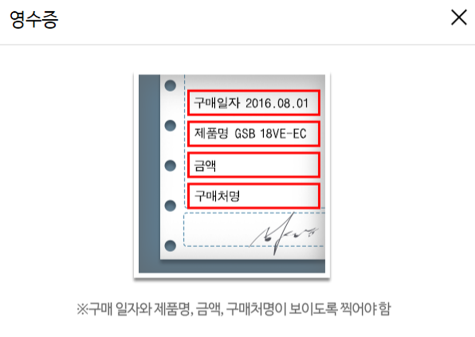 영수증은 구매일자, 제품명, 금액, 구매처명이 보이도록 이미지를 촬영하셔야 합니다.
