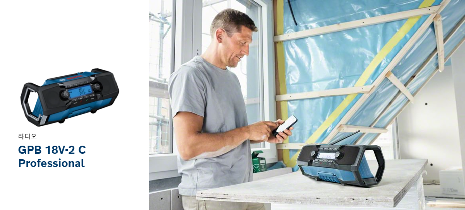 라디오는 현장에서 사용하기 매우 편리해 보입니다. 블루투스 물론 가능하고, FM라디오와 AUX가 됩니다.